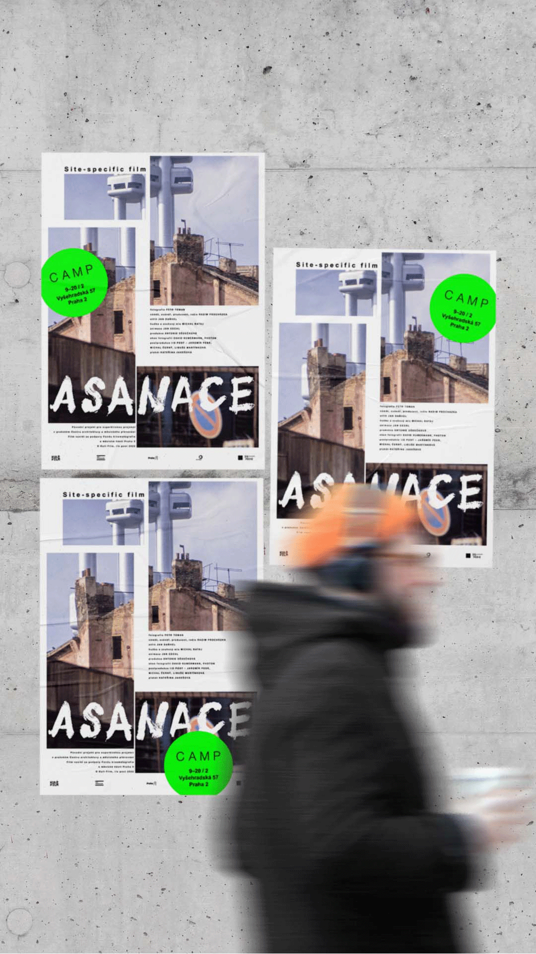 Plakát pro site specific film Asanace, který můžete vidět v pražském