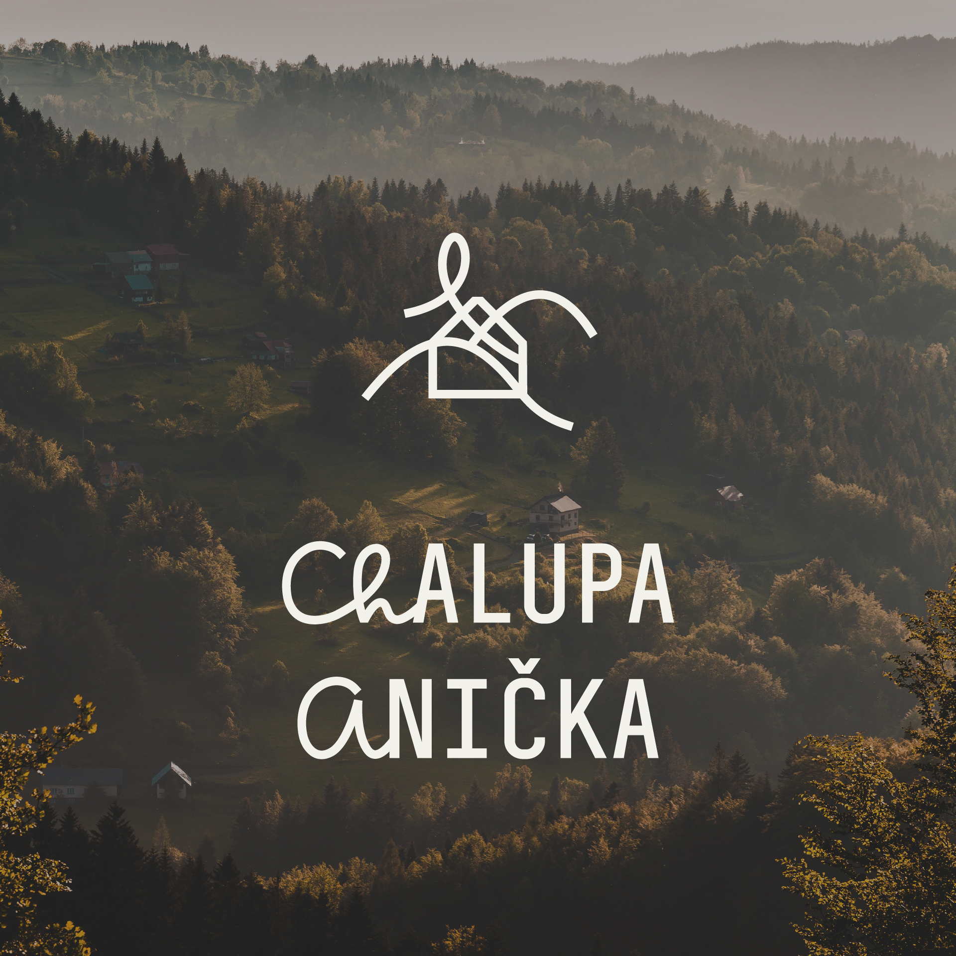 Jeseníky. Příroda. Chalupa. Značka loga vznikla ze spojení linií chaty, hor a televizního vysílače Praděd. Společně tak symbolizují dům v harmonickém propojení s jesenickou přírodou.